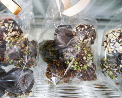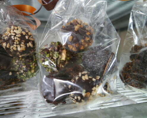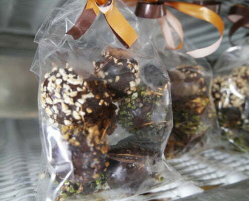 Piccole, fresche e deliziose palline ricoperte di cioccolato e granella, preparate una ad una in modo artigianale.